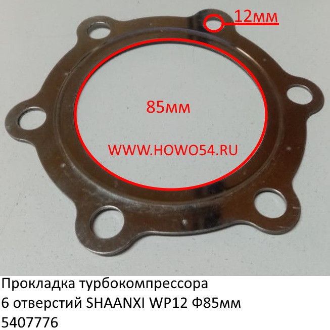 —Прокладка турбокомпрессора 6 отверстий SHAANXI WP12 Ф85мм 612630110716 (07776)